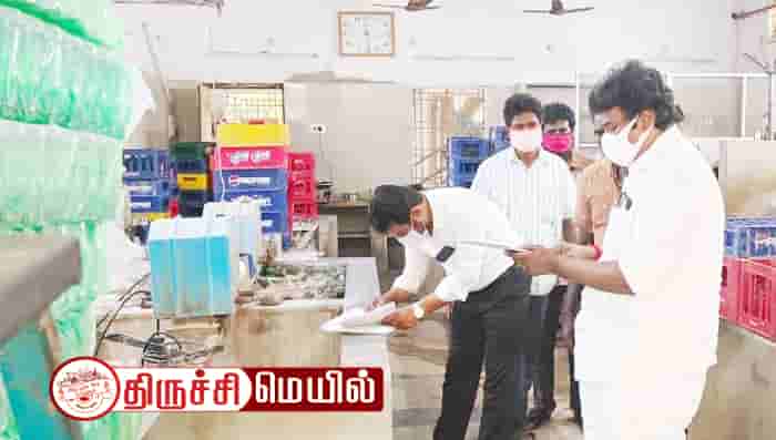 திருச்சி பீமநகரில் செயல்பட்டு வந்த குளிர்பானம் தயாரிப்பு நிறுவனத்தில் தயாரிப்பு தேதி மற்றும் காலாவதி தேதி இல்லாமல் குளிர்பானங்கள் தயாரிக்கப்படுவதாக உணவு பாதுகாப்புத்துறையினருக்கு ரகசிய தகவல் கிடைத்தது. இதையடுத்து உணவு பாதுகாப்பு மாவட்ட நியமன அலுவலர் டாக்டர் ரமேஷ்பாபு தலைமையிலான அதிகாரிகள் குழுவினர் அந்த குளிர்பான நிறுவனத்தில் அதிரடி ஆய்வு நடத்தினார்கள். அப்போது அங்கு தயாரிக்கப்பட்ட குளிர்பானங்களில் தயாரிப்பு மற்றும் காலாவதி தேதி குறிப்பிடாமல் இருந்தது தெரியவந்தது.