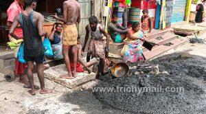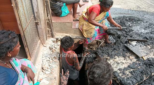 இந்நிலையில் நேற்று திருச்சி பெரியகடை வீதியில் இந்தியன் வங்கி அருகில் எந்தவித பாதுகாப்பு உபகரணங்களின்றி தூய்மைப் பணியாளர்கள் சாக்கடை கழிவுகளை அள்ளும் பணியில் ஈடுபட்டனர். துப்புரவு பணியாளர்களுக்கு பாதுகாப்பு உபகரணங்களை கொடுக்க வேண்டுமென தமிழ்நாடு அரசாணையும் 2013 மறுவாழ்வு சட்டமும் சொல்கிறது இருந்தும் இவர்களுக்கு எந்தவித பாதுகாப்பு உபகரணமும் கொடுக்கப்படவில்லை. எந்தவித பாதுகாப்பு உபகரணங்களும் வழங்காமல் தூய்மைப்பணியாளர்களை இப்பணியில் ஈடுபடுத்திய மாநகராட்சி ஒப்பந்ததாரர் திருச்சி மாவட்ட ஆட்சியர் உரிய நடவடிக்கை எடுக்க வேண்டும். இப்பணியில் ஈடுபட்ட பணியாளர்களுக்கு உரிய இழப்பீடை தமிழ்நாடு அரசு வழங்க திருச்சி மாவட்ட ஆட்சியர் வழிவகை செய்ய வேண்டும் என்று அகில இந்திய மக்கள் மறுமலர்ச்சி கழக நிறுவனர், தலைவர் பொன் முருகேசன் கேட்டுக் கொண்டுள்ளார்.