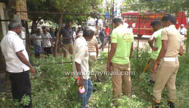 திருச்சி, ஜூலை 26   திருச்சி மாவட்டம், மணப்பாறை ஊராட்சி ஒன்றிய அலுவலக வாளாகத்தில் தான் ஊராட்சி ஒன்றிய அலுவலகம், தோட்டக்கலை துறை, வேளாண்துறை சட்டமன்ற உறுப்பினர் உள்ளிட்ட அலுவலகம், கால்நடை மருந்தகம் ஆகியவை உள்ளது. ஆனால் வளாகம் பெரும்பாலும் புதர்கள் மண்டிக்கிடக்கிறது. இந்நிலையில் இன்று காலை வேளாண்துறை அலுவலகம் அருகே பாம்பு செல்வதை அறிந்த மக்கள் இதுபற்றி மணப்பாறை தீயணைப்பு துறையினருக்கு தகவல் கொடுத்தனர்.
