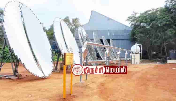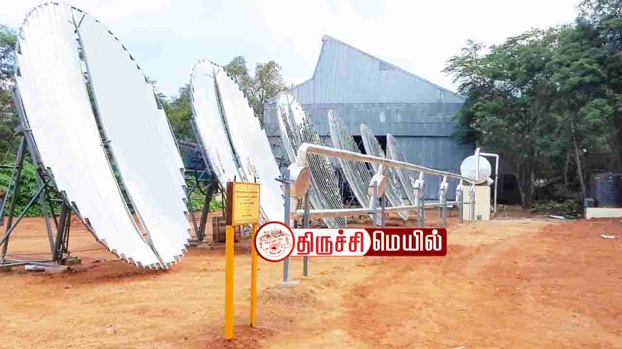 திருச்சி பொன்மலை ரெயில்வே பணிமனையில் ரெயில் என்ஜின்கள் தயாரித்தல் மற்றும் பராமரிப்பு உள்ளிட்ட பல்வேறு பணிகள் மேற்கொள்ளப்பட்டு வருகிறது. இங்கு என்ஜின்களுக்கான உதிரிபாகங்களை வெப்ப நீரால் சுத்தப்படுத்துவதற்காக இதுவரை மின்ஹீட்டர்கள் பயன்படுத்தப்பட்டு வந்தன. அதற்கு பதிலாக பாராபோலிக் சோலார் கான்சென்ட்ரேட்டர் என்ற நீரை சூடாக்கும் புதிய யூனிட் நிறுவப்பட்டுள்ளது.