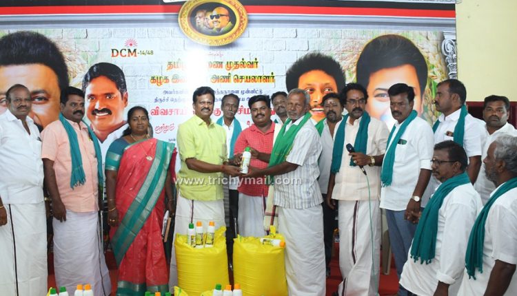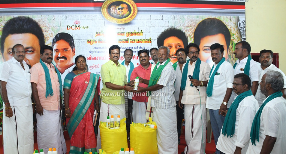 அதன் தொடர்ச்சியாக திருச்சி தெற்கு மாவட்ட செயலாளரும், அமைச்சருமான அன்பில் மகேஸ் பொய்யாமொழி வழிகாட்டுதலின் பேரில், திருச்சி தெற்கு மாவட்ட மாநகர விவசாய அணி சார்பாக கல்லுக்குழி பகுதியில் அமைந்துள்ள சமுதாய கூடத்தில் விவசாயிகளுக்கு பூச்சி மருந்து மற்றும் உரம் வழங்கும் நிகழ்வு நடைபெற்றது.