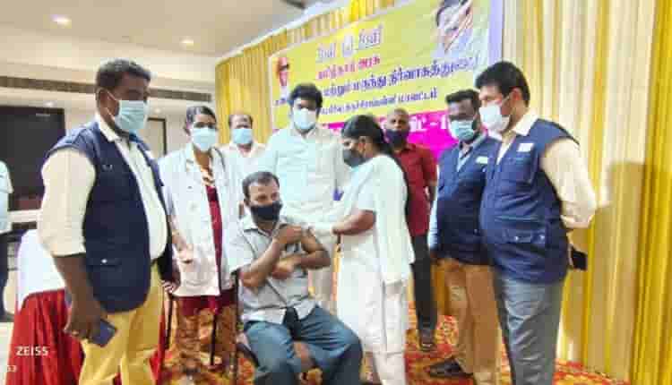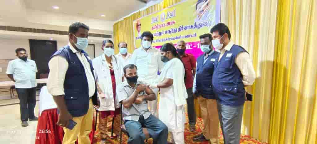 திருச்சி மாவட்டம் சத்திரம் பேருந்து நிலையத்தில் கொரோனா தடுப்பூசி முகாம் உணவு வணிகர்கள் மற்றும் அவர்களின் குடும்பத்திற்கு சிறப்பு தடுப்பூசி முகாம் நடைபெற்றது.