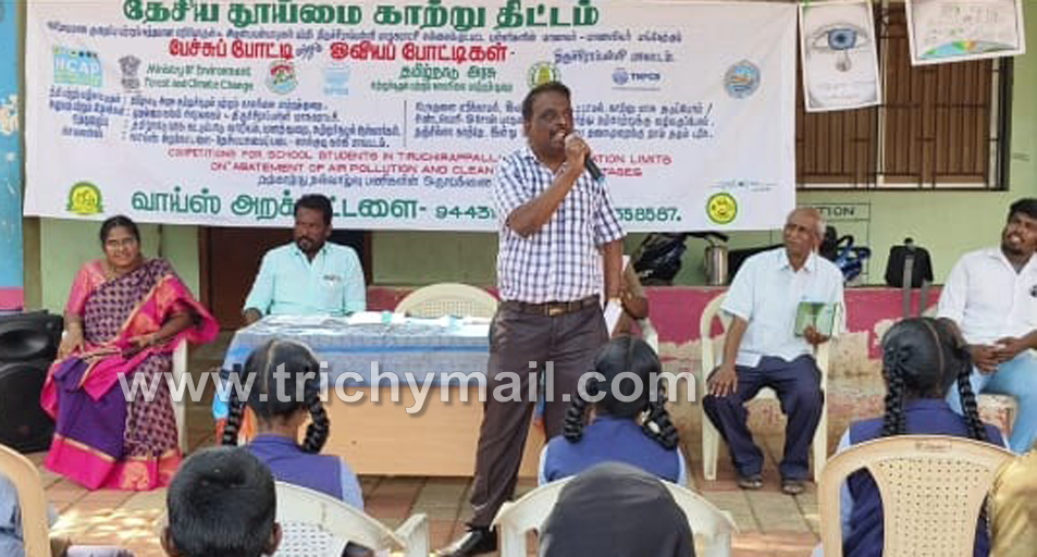 தேசிய தூய்மை காற்று திட்டத்தின் கீழ் திருச்சி மாநகராட்சி மாணவர் – மாணவியர் பங்கேற்ற காற்று மாசு குறைப்பு மற்றும் சுத்தமான எரிபொருளும் அதன் பயன்களும் பற்றிய பேச்சுப்போட்டி மற்றும் ஓவியப் போட்டிகள் இன்று ஏர்போர்ட் வயர்லெஸ் ரோடு மேல்நிலைப்பள்ளியில் நடைப்பெற்றன.