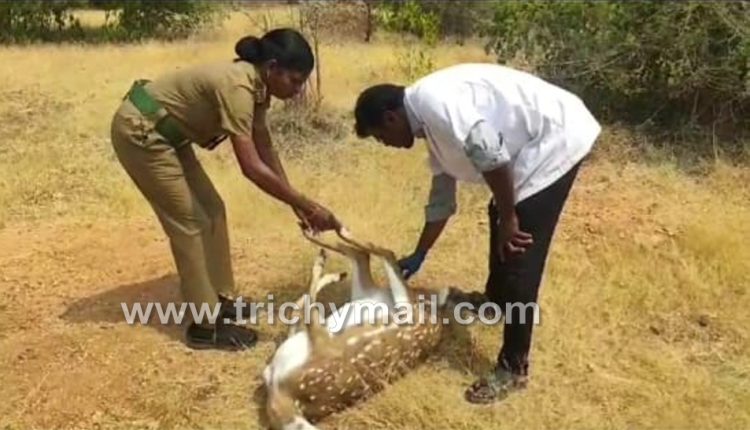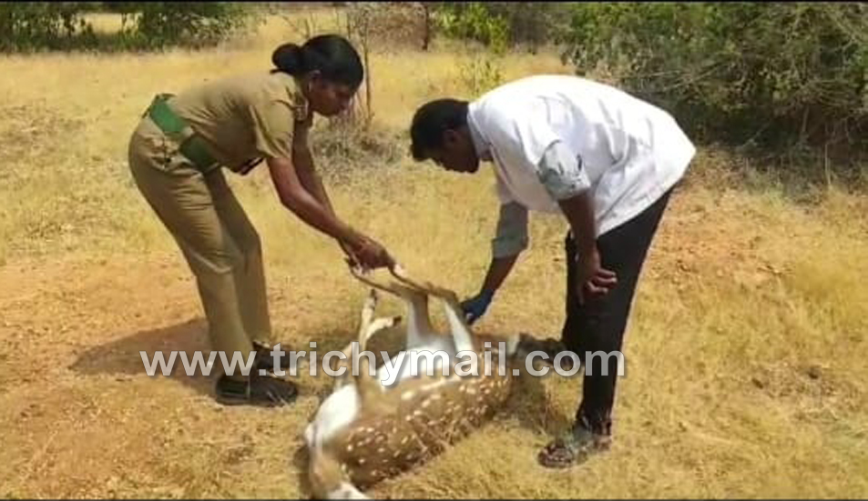 திருச்சி, பிப். 23 திருச்சி மாவட்டம் துறையூர் பகுதியில் அடையாளம் தெரியாத வாகன மோதி மூன்று வயது மதிக்கத்தக்க பெண் மான் பலி யான சம்பவம் அதிர்ச்சியை ஏற்படுத்தியுள்ளது. இது பற்றி தகவல் இருந்த துறையூர் வனத்துறை அதிகாரிகள் விபத்தில் பலியான புள்ளி மானை மீட்டு குறிச்சி மலை அடிவாரத்தில் உள்ள வனத்துறை அலுவலகத்தில் பிரேத பரிசோதனைக்காக வைத்துள்ளனர்.