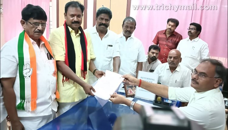 ஸ்ரீரங்கம் தொகுதி திமுக வேட்பாளர் துரைராஜ் வேட்புமனு தாக்கல்