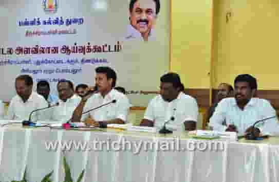 திருச்சிராப்பள்ளி மாவட்ட ஆட்சியரகத்தில், பள்ளிக் கல்வித் துறையின் சார்பில், திருச்சி, கரூர், அரியலூர், பெரம்பலூர், புதுக்கோட்டை மற்றும் திண்டுக்கல் உள்ளிட்ட ஆறு மாவட்டங்களை உள்ளடக்கிய மண்டல அளவிலான கல்வித்துறை அலுவலர்களுடனான ஆய்வுக்கூட்டம்பள்ளிக் கல்வித்துறை அமைச்சர் அன்பில் மகேஸ் பொய்யாமொழி தலைமையில், சட்டத்துறை அமைச்சர் எஸ்.