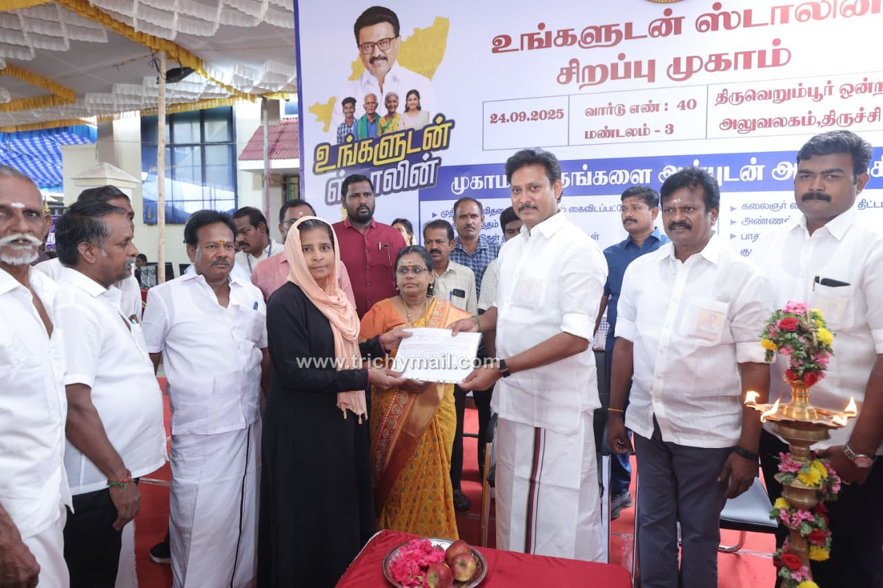 திருச்சி, செப். 24  திருச்சி மாநகராட்சி 40வது வார்டு மற்றும் துவாக்குடி நகராட்சிக்கு உட்பட்ட பகுதியில் நடந்த உங்களுடன் ஸ்டாலின் திட்ட முகாமை தமிழக பள்ளிக்கல்வித்துறை அமைச்சர் அன்பில் மகேஷ் பொய்யாமொழி தொடங்கி வைத்தார்.