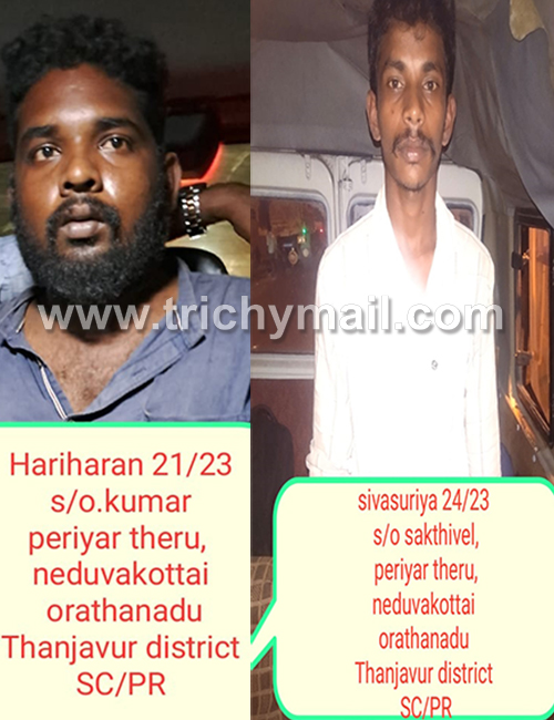 இருவரையும் ஒரத்தநாடு பகுதியில் கொலை செய்து துறையூர் பகுதியில் குற்றவாளிகள் வீசி சென்றது தெரிய வந்தது மேலும் கொலை சம்பவமாக ஒரத்தநாடு பகுதியை சேர்ந்த ஹரி (22) சூர்யா (24) ஆகிய இரண்டு பேரையும் ஒரத்தநாடு போலீசார் கைது செய்து மேல் விசாரணை நடத்தி வருகின்றனர்.