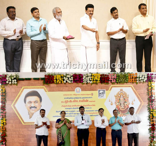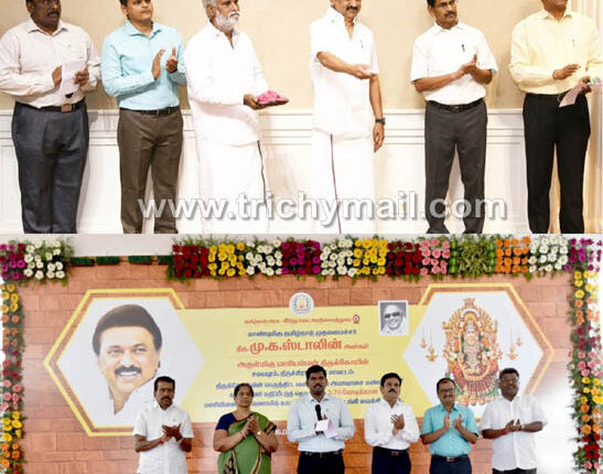 திருச்சி, ,ஏப். தமிழ்நாடு முதலமைச்சர் மு.க.ஸ்டாலின் சென்னை தலைமைச் செயலகத்திலிருந்து இன்று திருச்சி சமயபுரம் மாரியம்மன் கோவிலில் பெருந்திட்ட வளாகத்தில் ரூ.3.78 கோடி மதிப்பீட்டில் அமாவாசை மண்டம் கட்டும் பணியை காணொளி காட்சி மூலம் தொடங்கி வைத்தார். திருச்சி சமயபுரம் மாரியம்மன் கோவிலில் நடைபெற்ற விழாவில் மாவட்ட ஆட்சியர் பிரதீப்குமார் கலந்து கொண்டு அமாவாசை மண்டம் கட்டும் இடத்தினை பார்வையிட்டார். இந்நிகழ்வில் லால்குடி வருவாய் கோட்டாட்சியர் வைத்தியநாதன், இந்து சமய அறநிலையத்துறை இணை இயக்குநர்கள் செல்வராஜ், கல்யாணி, இந்து சமய அறநிலையத்துறை அலுவலர்கள் மற்றும் கோவில் பணியாளர்கள், உள்ளாட்சி அமைப்புகளின் பிரதிநிதிகள்,அரசு அலுவலர்கள் கலந்து கொண்டனர்.