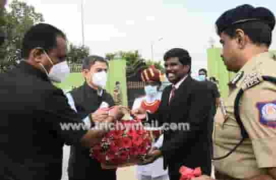 மாண்புமிகு தமிழ்நாடு ஆளுநர் ஆர்.என்.ரவி நேற்று (18.8..22) சென்னையில் இருந்து நாகப்பட்டினம் செல்லும் வழியில், அவருக்கு திருச்சிராப்பள்ளி விமான நிலையத்தில் மாவட்ட ஆட்சித் தலைவர் மா.பிரதீப் குமார்,பூங்கொத்து வழங்கி வரவேற்றார்.
