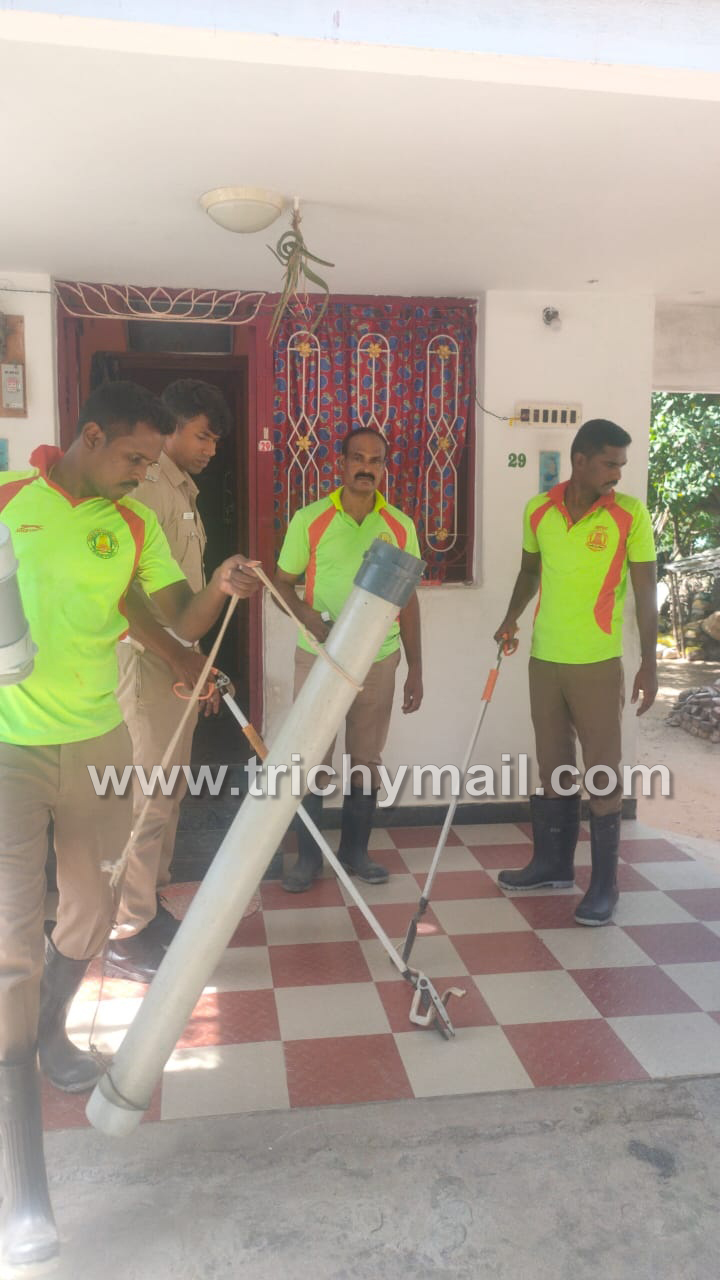 வீட்டிற்குள் புகுந்த பாம்பை மீட்ட தீயணைப்புத்துறையினர்
