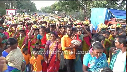 இதையடுத்து பிறந்த ஊரை நோக்கி சுற்று வட்டார கிராமங்களில் வசிக்கும் பெண்கள் அனைவரும் சொந்த ஊரான பின்னத்தூருக்கு சீர்வரிசையோடு நிகழ்ச்சிக்கு புறப்பட்டனர். அதன்படி நூற்றுக்கணக்கான பெண்கள் விதவிதமான பழங்களை தட்டில் வைத்து சுமார் 4 கிலோ மீட்டர் தூரம் தலையை சுமந்தபடி கோவிலை நோக்கி சென்றனர். பின்னர் கோவிலில் சிறப்பு வழிபாடுகள் நடைபெற்ற பின் அனைவரும் தங்கள் கொண்டு வந்த சீர்வரிசையாய் எடுத்து சென்றனர். முன்னதாக தாரை தப்பட்டை முழங்க ஊர்வலமாக சென்ற போது பெண்கள் ஆடிப் பாடி தங்களின் மகிழ்ச்சியை வெளிப்படுத்தினர். இதே போல் சிறுவர்கள் முதல் பெண்கள் வரை ஆட்டத்திற்கு பஞ்சம் இல்லை என்று சொல்லும் அளவில் விழா களை கட்டியது.