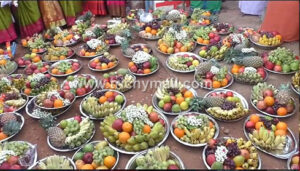 பழத்தட்டுகளை சீர்வரிசையாக கோவில் விழாவுக்கு எடுத்து சென்ற கிராம மக்கள்.
