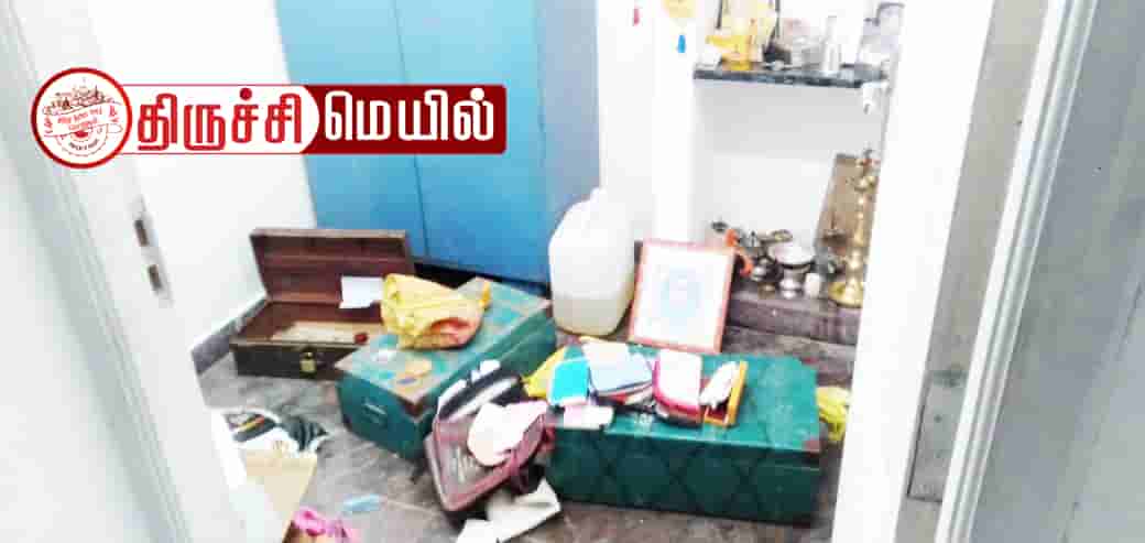 மதியம் 1 மணி அளவில் தர்மராஜ் மனைவி தனபாக்கியம்(55). தனது மருமகனை அழைத்துக்கொண்டு ஆடு மாடுகளை மேய்க்க காட்டுக்குச் சென்று உள்ளனர். துறையூர் சென்று மாலை 5 மணி அளவில் தர்மராஜ் வீடு திரும்பியுள்ளார். வீடு திரும்பிய தர்மராஜ் வீட்டின் கதவை பார்த்தபோது வீட்டின் பூட்டு உடைக்கப்பட்டு கதவு திறந்து இருந்தது. இதனால் சந்தேகம் அடைந்த தர்மராஜ் வீட்டின் சாமி அறையில் சென்று பார்த்தபோது பீரோ, இரும்புப்பெட்டி திறந்து கிடந்தது. உடனடியாக தனது மனைவிக்கு செல்போன் மூலம் தகவல் தெரிவித்து விட்டு இரும்பு பெட்டியை பார்த்தபோது, நகைகள் மற்றும் பணம் திருடுபோய் இருப்பது கண்டு அதிர்ச்சி அடைந்தார். பின்னர் அவர் இதுகுறித்து உடனே கல்லக்குடி காவல் நிலையத்தில் புகார் அளித்தார்.