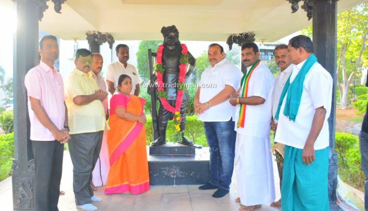 திருச்சி, ஆக.3 சுதந்திர போராட்ட தியாகி தீரன் சின்னமலை 218 ஆண்டு நினைவு தினத்தை முன்னிட்டு திருச்சி மாவட்ட ஆட்சியர் அலுவலகத்தின் எதிரில் உள்ள தமிழ்நாடு அரசு போக்குவரத்து திருச்சி கிளை அலுவலக வளாகத்தில் அமைந்துள்ள திருவுருவ சிலைக்கு திருச்சி கிழக்கு சட்டமன்ற உறுப்பினர் திரு. இனிகோ இருதயராஜ் மாலை அணிவித்து மரியாதை செலுத்தினார்