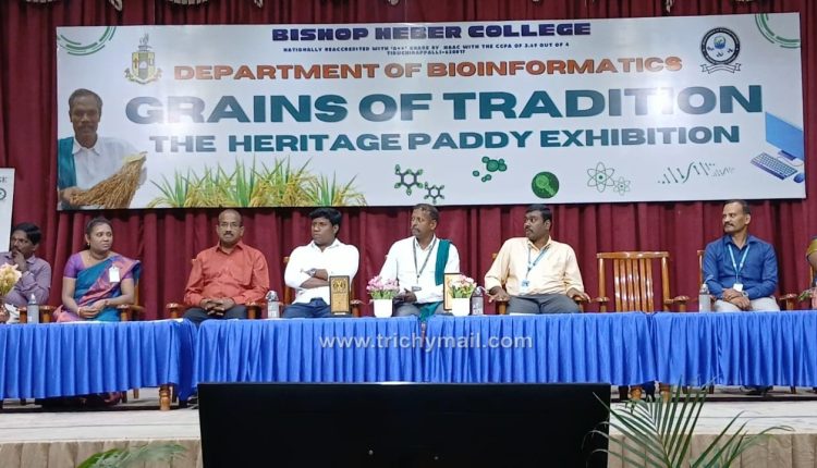 திருச்சியில் பிஷப் ஹீபர் கல்லூரி மற்றும் தமிழ்நாடு நெல் ஜெயராமன் பாரம்பரிய நெல் பாதுகாப்பு ஆகியோர் சார்பில் பாரம்பரிய நெல் விதை கண்காட்சி திருச்சி பிஷப் கல்லூரியில் நேற்று  நடைபெற்றது.