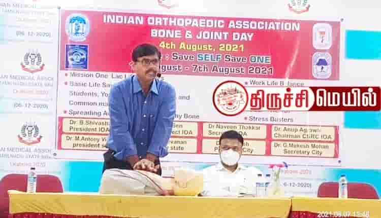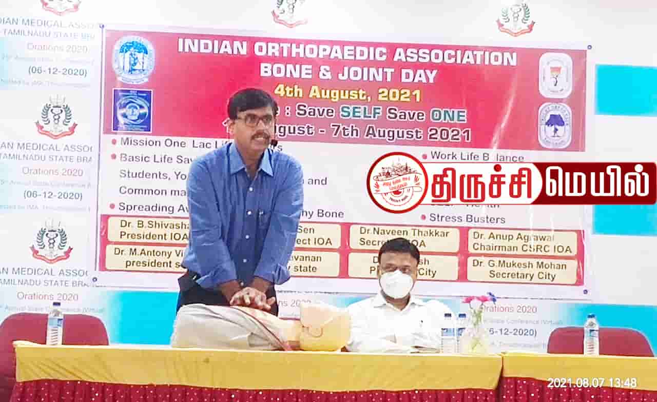 திருச்சி மாநகர காவல்துறை மற்றும் திருச்சி எலும்பு மூட்டு மருத்துவ சங்கம் சார்பில் திருச்சி மாநகர போக்குவரத்து பணியில் ஈடுபடும் போக்குவரத்து ஒழுங்கு பிரிவு காவலர்கள் மற்றும் போக்குவரத்து புலனாய்வு பிரிவு காவலர்களுக்கான விபத்து கால முதலுதவி பற்றிய ஒரு நாள் பயிற்சி நேற்று இந்திய மருத்துவ சங்கம் (IMA) ஹாலில் நடைபெற்றது.