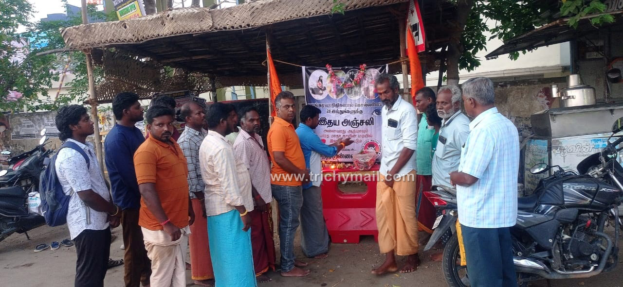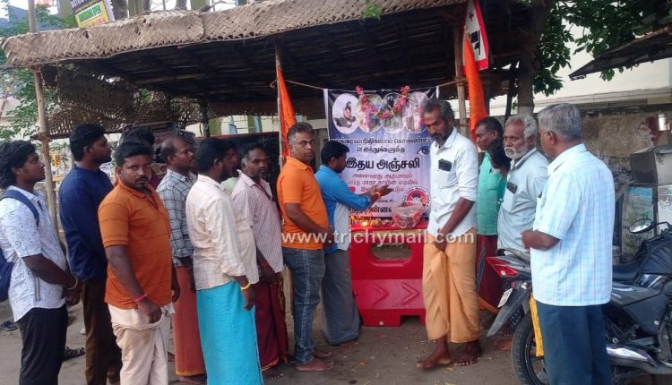 திருச்சி, ஏப்.25 ஜம்மு காஷ்மீர் மாநிலத்தில் உள்ள பஹல்காம் பகுதியில் நடைபெற்ற தீவிரவாத தாக்குதலில் பலியான அப்பாவி இந்து மக்கள் 27 நபர்களின் ஆன்மா சாந்தியடைய இந்து முன்னணி சார்பாக புஷ்பாஞ்சலி செலுத்தும் நிகழ்வு லால்குடி ரவுண்டானாவில் நடைப்பெற்றது.சிறப்பு அழைப்பாளர் தனவேல் மாவட்ட செயலாளர் புறநகர் லால்குடி ஒன்றியப் பொதுச்செயலாளர் சதிஷ் குமார் மற்றும் ஒன்றிய பொறுப்பாளர்கள் கலந்துகொண்டனர்.