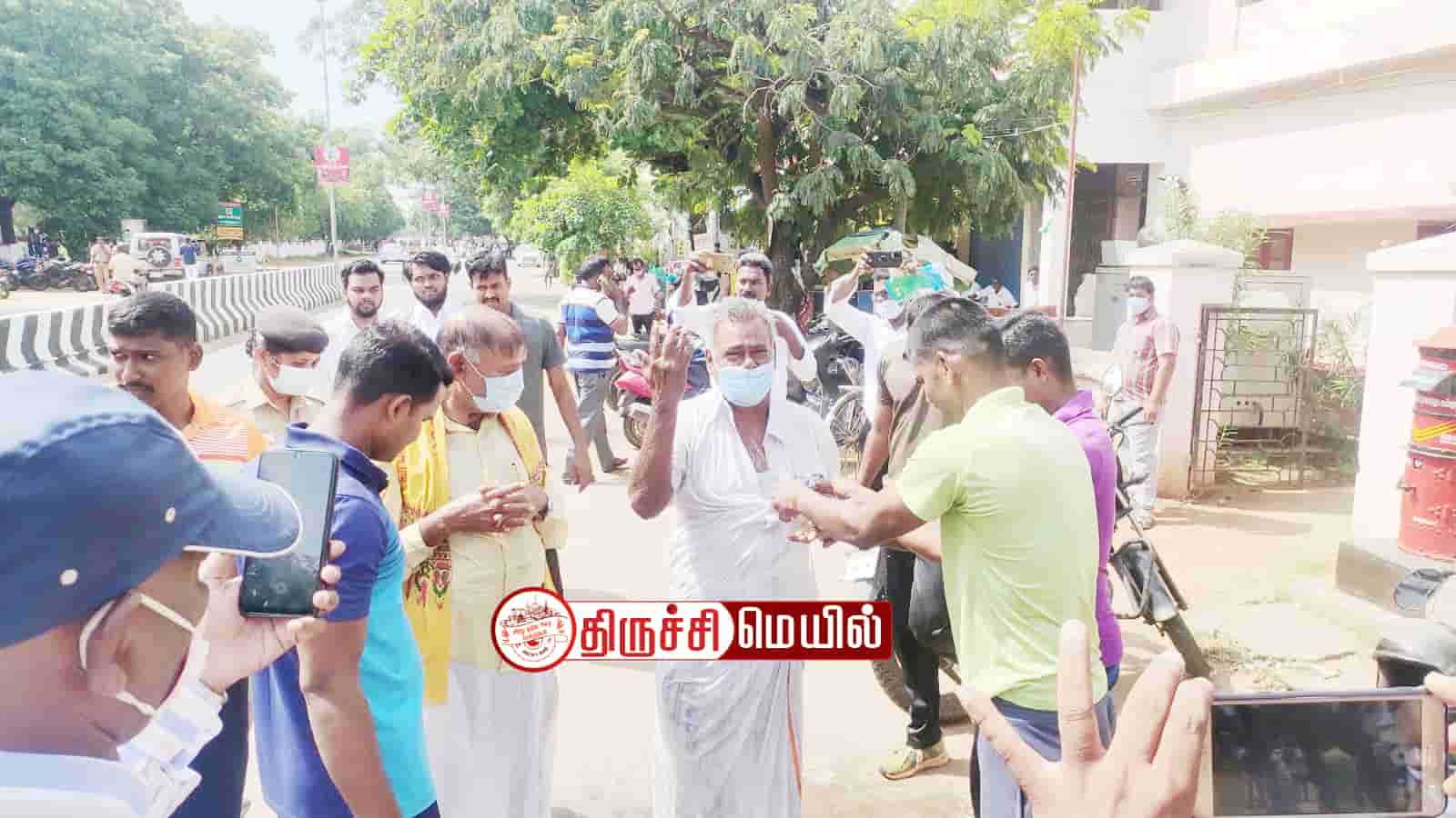 பெரம்பலூர் மாவட்ட கண்காணிப்பாளரிடம் புகார் கொடுத்தும் நடவடிக்கை எடுக்காததை கண்டித்து திருச்சி ஐஜி அலுவலகம் முன்பு முதியவர் தற்கொலை முயற்சி. பெரம்பலூர் மாவட்டம் துறைமங்கலம் பகுதியை சேர்ந்தவர் ராஜூ செட்டியார்(71).இவருக்கு சரவண குமார் என்ற மகன் உள்ளார். இவர் கடந்த வருடம் இறந்துவிட்டார்.