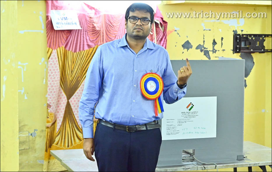 திருச்சி மாவட்டத்தில் 9 தொகுதிகளிலும் வாக்காளர்கள் ஆர்வத்துடன் நீண்ட வரிசையில் நின்று வாக்களித்து வருகின்றனர். திருச்சி மாவட்ட தேர்தல் அலுவலரும், மாவட்ட ஆட்சியருமான வே.சரவணன் காஜாமலை அல் ஜம்லேதிஷ் சாதிக் மெட்ரிக்குலேசன் பள்ளியில் வாக்களித்தார்.