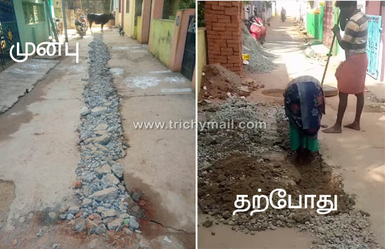 திருச்சி மெயில் செய்தி எதிரொலி தோண்டப்பட்ட சாலையில் குழாய் அமைக்கும் பணி