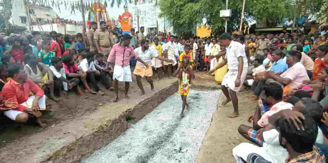 தா.பேட்டை அருகே பிள்ளா பாளையம் கிராமத்தில் அக்னி மாரியம்மன் கோயில் திருவிழாவில் தீ மிதித்து பக்தர்கள் நேர்த்திக் கடன் செலுத்தினர்.