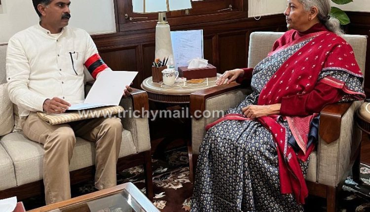திருச்சி,டிச.1 திருச்சி நாடாளுமன்ற உறுப்பினர் துரை வைகோ தெரிவித்திருப்பதாவது, இன்று மதியம் 3 மணியளவில், மாண்புமிகு ஒன்றிய நிதியமைச்சர் நிர்மலா சீதாராமனை நாடாளுமன்ற வளாகத்தில் உள்ள அவரது அமைச்சக அலுவலகத்தில் சந்தித்தேன்.