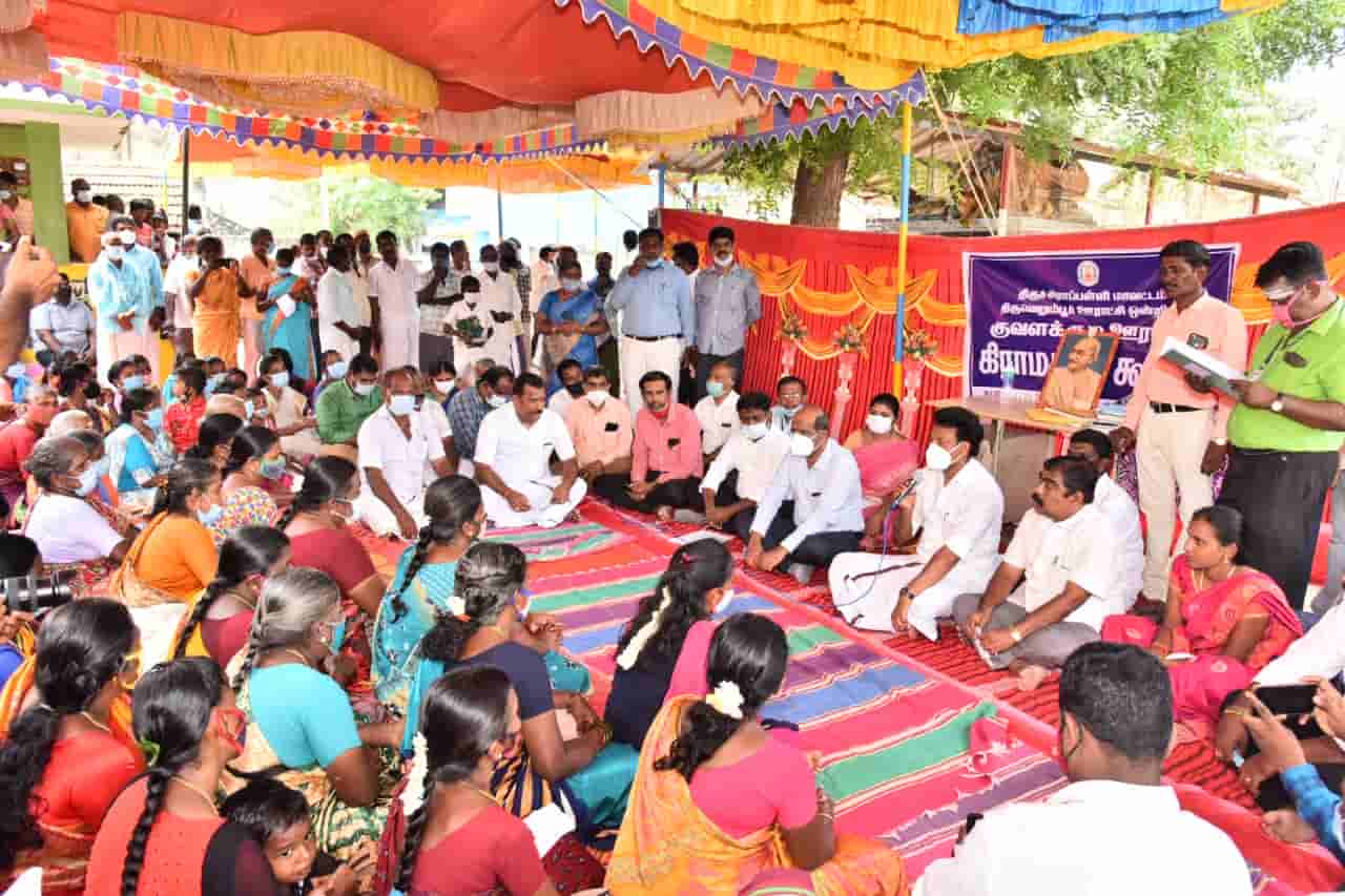 இதில் டெல்டா மாவட்டத்தில் 1809 இடங்களில் கிராமசபை கூட்டங்கள் நடைபெற்றது. குறிப்பாக திருச்சி மாவட்டத்தை பொறுத்தவரை 286 இடங்களை கிராம சபை கூட்டம் நடந்தது. திருச்சி திருவெறும்பூர் குவளக்டியில் நடந்த கிராமசபை கூட்டத்தில் அமைச்சர் அன்பில் மகேஷ் பொய்யாமொழி, மாவட்ட ஆட்சியர் சிவராசு ஆகியோர் பங்கேற்று பொதுமக்களிடம் குறைகளை கேட்டறிந்தனர்.