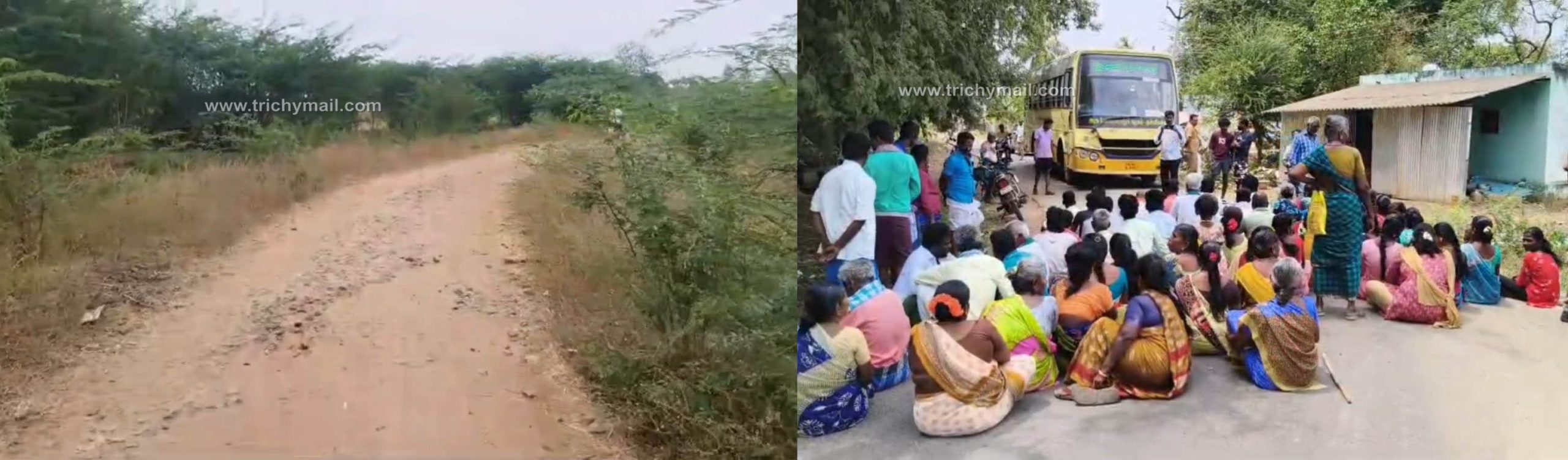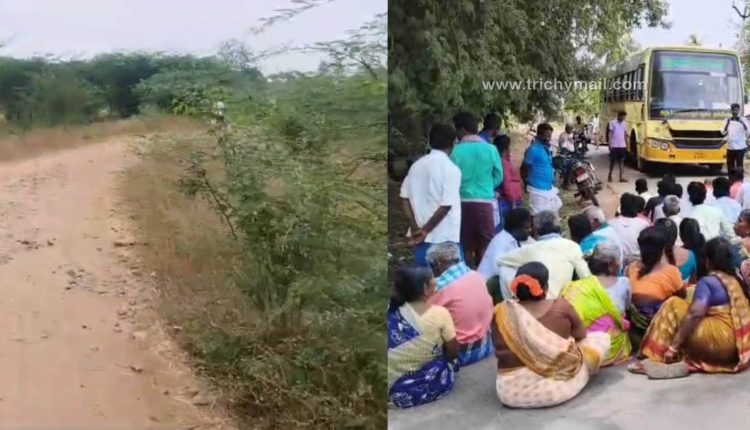 திருச்சி, மார்ச் 11  மணப்பாறை அருகே சாலை வசதி செய்து தராததைக்  கண்டித்து அரசு பேருந்தை சிறைபிடித்து கிராம மக்கள் போராட்டம்.