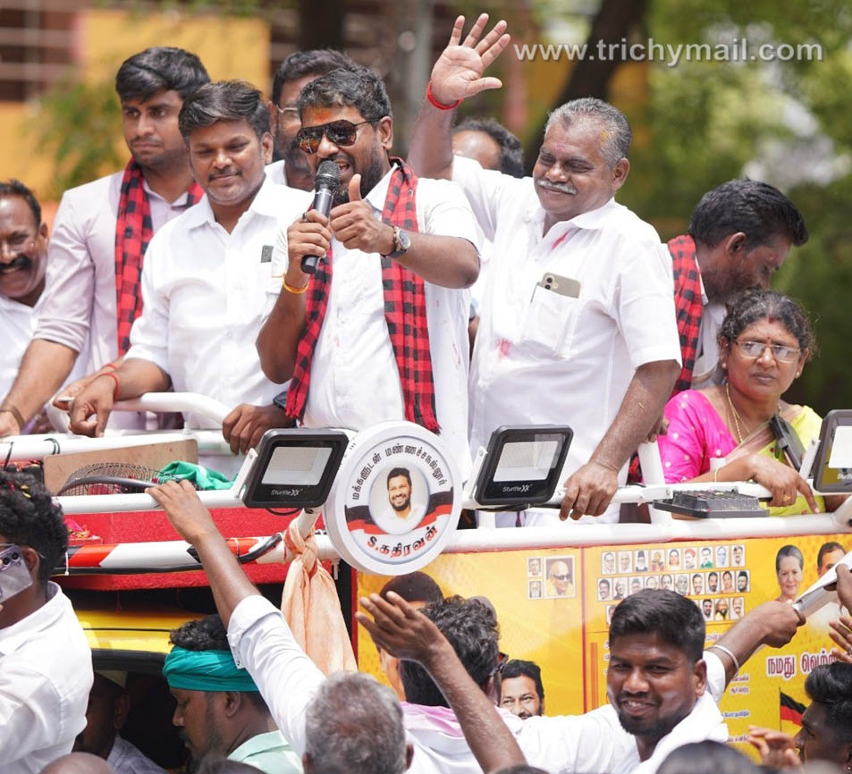 தமிழகத்தில் கடந்த 5 ஆண்டுகளாக, திராவிடத் தலைவர் மு.க.ஸ்டாலின் தலைமையில் நடந்த வரும் திராவிட மாடல் ஆட்சியில், நாளுக்கு ஒரு திட்டம், பொழுதுக்கு ஒரு திட்டம் என நாள் தோறும் மக்களுக்கு வளர்ச்சித்திட்டங்களையும், நலத்திட்டங்களையும் வாரி வழங்கியுள்ளார். அந்த வளர்ச்சி திட்டங்கள் மண்ணச்சநல்லுார் தொகுதியில் செல்லாத வீடுகளே இல்லை என்ற நிலையில்தான், அந்த உரிமையில் தான், உங்கள் வீட்டுப்பிள்ளையாக கதிரவனாகிய நான் மீண்டும் உங்களைத் தேடி வந்திருக்கிறேன்.