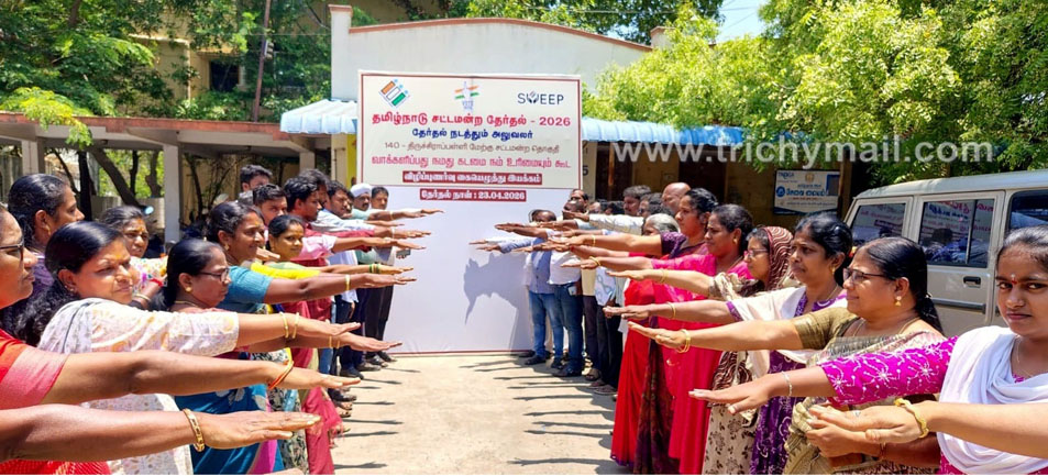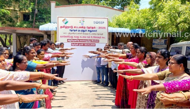 திருச்சி, ஏப்.3 தமிழ்நாடு சட்டமன்ற பொதுத் தேர்தல் நடைபெறவுள்ளதை முன்னிட்டு வாக்காளர்களுக்கு வாக்களிப்பதன் அவசியம் குறித்து விழிப்புணர்வு ஏற்படுத்தும் வகையில் திருச்சி மேற்கு சட்டமன்றத் தொகுதிக்குட்பட்ட பகுதிகளில் தேர்தல் நடத்தும் அலுவலர் முன்னிலையில் கையெழுத்து இயக்கம் மற்றும் வாக்காளர் விழிப்புணர்வு உறுதிமொழி ஏற்று விழிப்புணர்வு ஏற்படுத்தினர்.