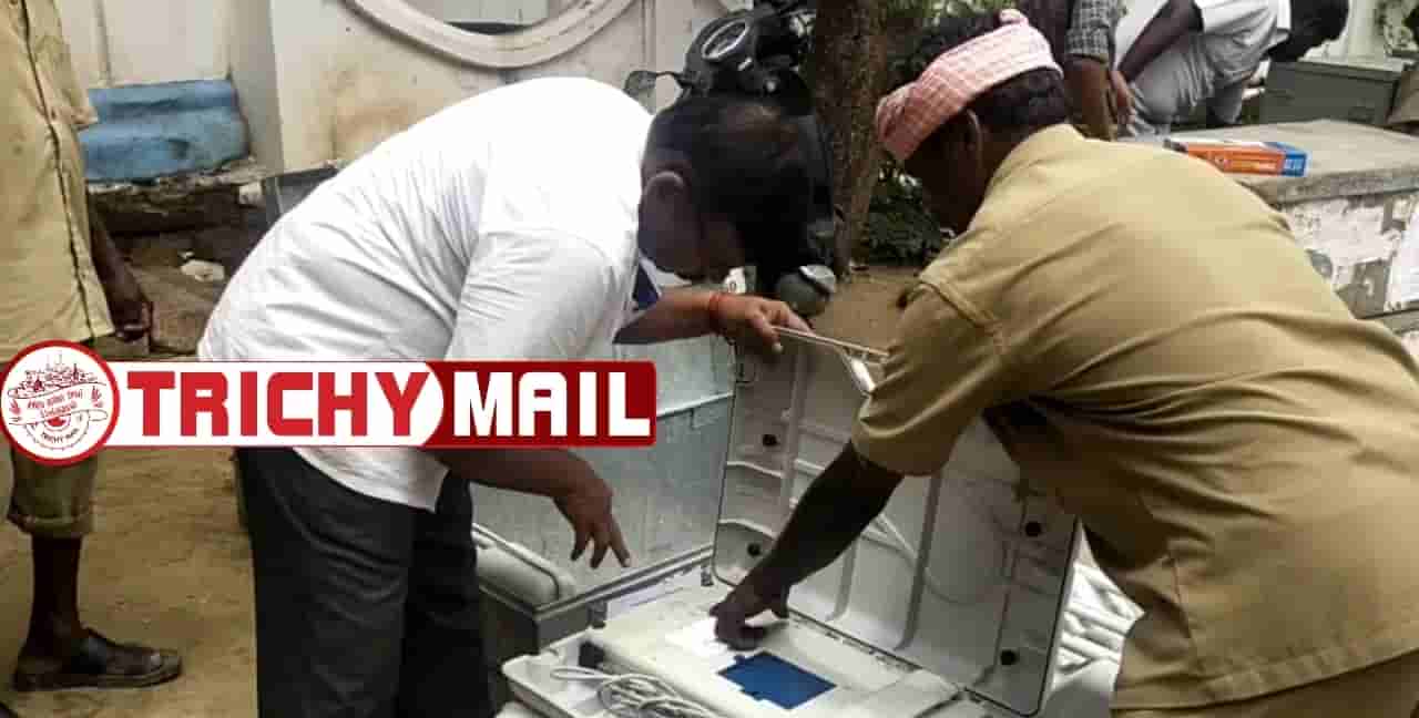 திருச்சி மாநகராட்சி தேர்தலுக்கான வாக்கு பதிவு இயந்திரங்கள் திருச்சி மாவட்ட ஆட்சியர் அலுவலக வளாகத்தில் உள்ள குழந்தைகள் ஊட்டசத்து மைய அலுவலக அறையில் வைக்கப்பட்டு சரி பார்க்கும் பணி நடைபெற்றது.