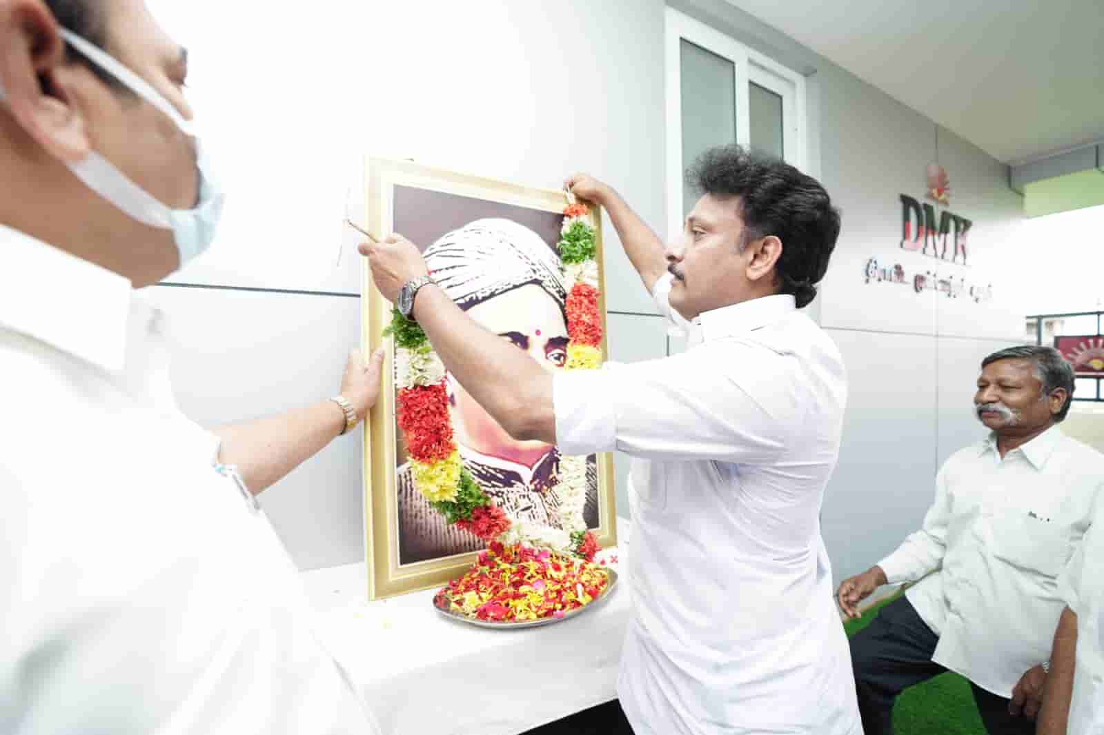 வா. உ. சிதம்பரனார் 150 வது பிறந்தநாளை முன்னிட்டு இன்று திருச்சி தெற்கு மாவட்ட கழக அலுவலகத்தில் அலங்கரித்து வைக்கப்பட்டிருந்த வா. உ. சிதம்பரனார் அவர்களின் திருவுருவ படத்திற்கு மாண்புமிகு பள்ளிக்கல்வித்துறை அமைச்சர் அன்பில் மகேஷ் பொய்யாமொழி மாலை அணிவித்து மரியாதை செலுத்தினார்.