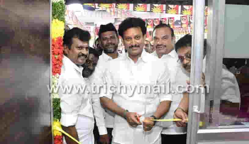 தமிழக பள்ளிகல்வி துறை அமைச்சர் திருச்சி தெற்கு மாவட்ட திமுக செயலாளர் அன்பில் மகேஷ் பொய்யாமொழி அலுவலகம் மற்றும் இ.சேவை மையம் திறந்துவைத்தார்