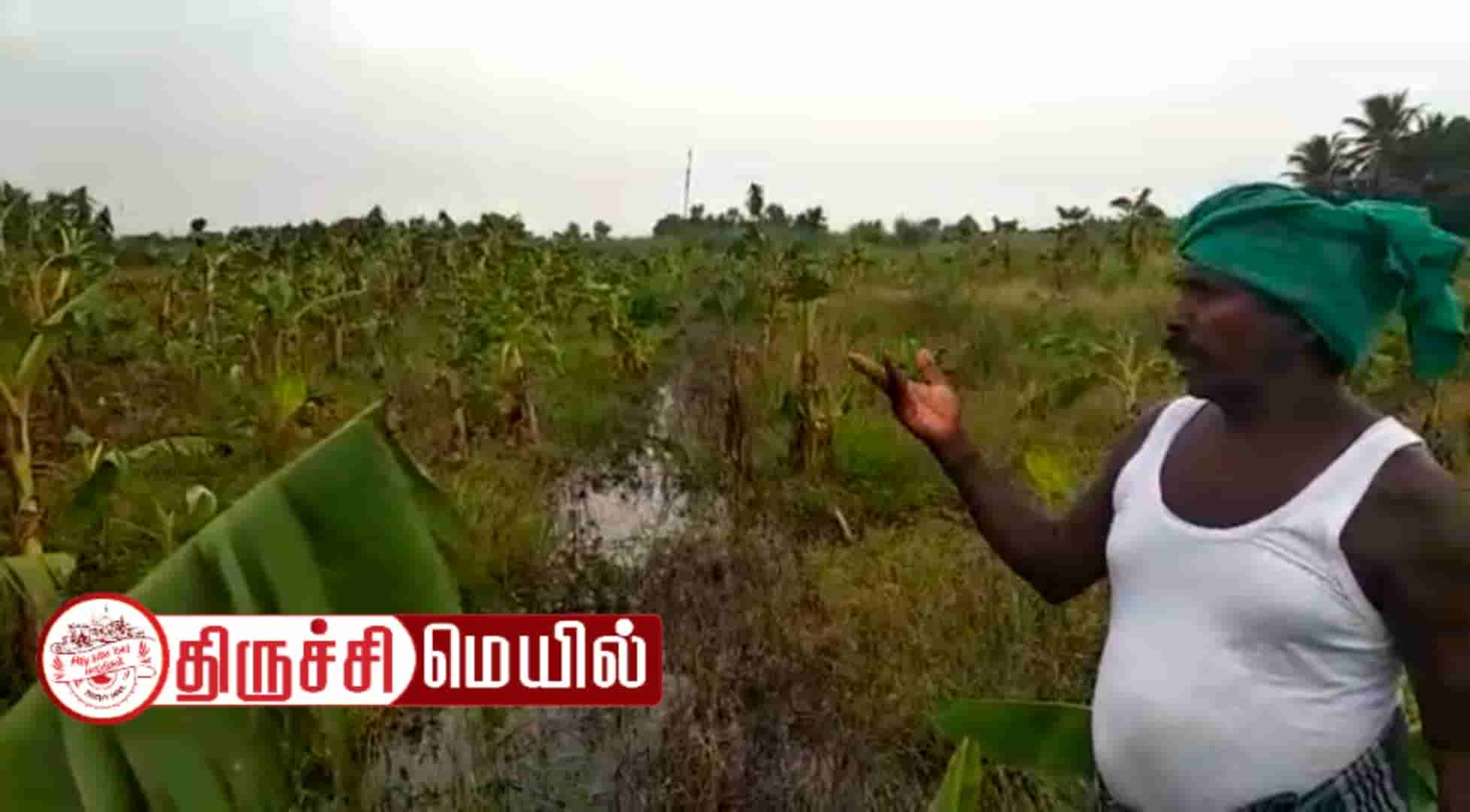 இந்த நிலையில் தற்போது மழை பெய்வதாலும், பாசனத்திற்கு வரும் தண்ணீரில் ஒதுங்க இடமில்லாமல் வயல்வெளிகளில் சூழ்ந்துள்ளது. அப்பகுதியில் வாழை விவசாயம் செய்த பெரியண்ணன் என்பவருடைய வாழை தோட்டம் முழுவதும் தண்ணீர் சூழ்ந்து வாழை மரங்கள் அனைத்தும் சேதமடைந்துள்ளது. இதுகுறித்து உடனடியாக நடவடிக்கை எடுக்க வேண்டும் எனவும் விவசாய நிலங்களில் தண்ணீர் தேங்குவதால் அடுத்து எப்படி விவசாயம் செய்ய முடியும் என விவசாயிகள் கோரிக்கை வைத்து வருகின்றனர்.