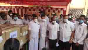 ஐசி.ஐசி.ஐ நிறுவனம் மூலம் ஆர்.டி.பி.சி.ஆர் கருவியை வழங்கு உள்ளனர்,மேலும் பலர் மருத்துமனைக்கு பல உதவியை செய்து உள்ளனர். நீட் தேர்வை தமிழகத்தில் இருந்து விலக்கு பெற முதல்வர் தொடர்ந்து முயற்சி செய்து வருகிறார். முதல் கூட்ட தொடரிலே சட்ட மன்றத்தில் தீர்மானம் இயற்றி குடியரசு தலைவருக்கு அனுப்பி அழுத்தம் கொடுப்பதே எங்கள் நிலைபாடு. 19 லட்சம் தடுப்பூசிகளை கூடுதலாக மத்திய அரசு அனுப்பியது – நாள்தோறும் 3 லட்சம் முதல் தடுப்பூசிகள் செலுத்தப்பட்டு வருகிறது. 17 லட்சம் தடுப்பூசிகள் மட்டுமே தனியார் மருத்துவமனைகள் சார்பில் போட்டுள்ளனர். 2 கோடியே 49 லட்சம் பேருக்கு… ஏறத்தாழ 2.5 கோடி பேருக்கு தடுப்பூசிகளை செலுத்தி உள்ளோம். மருத்துவமனைக்கு என்ன தேவை,எந்தெந்த துறைகளில் மருத்துவர்கள் தேவை என்பது குறித்து கேட்டுள்ளோம் கண்டிப்பாக அதனை நிரப்ப நடவடிக்கை எடுப்போம்.