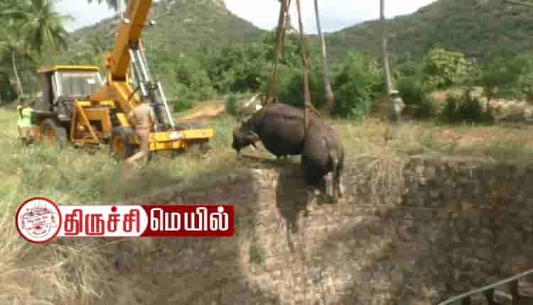 திருச்சி அருகே கிணற்றில் விழுந்த காட்டெருமை – 4 மணிநேர போராட்டத்திற்கு பிறகு அழுகிய நிலையில் மீட்பு!