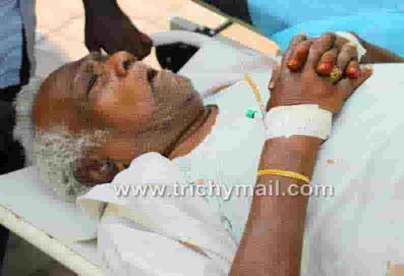 முன்னாள் போலீஸ் நிலையம் அருகே தேர் சென்றபோது லால்குடி பகுதியை சேர்ந்த தையல் தொழிலாளி கலியபெருமாள்(வயது 75) என்பவர் எதிர்பாராதவிதமாக தேரின் சக்கரத்தில் சிக்கினார்.இதில், அவரது இரு கால்களும் நசுங்கின.